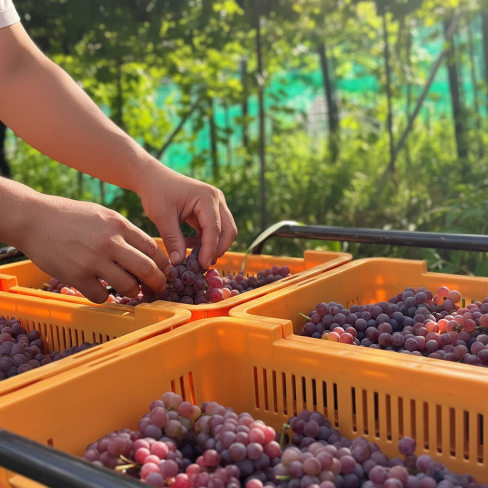 山の斜面による適度な水分ストレス、山あいの昼夜寒暖差がブドウの美味しさにつながります。