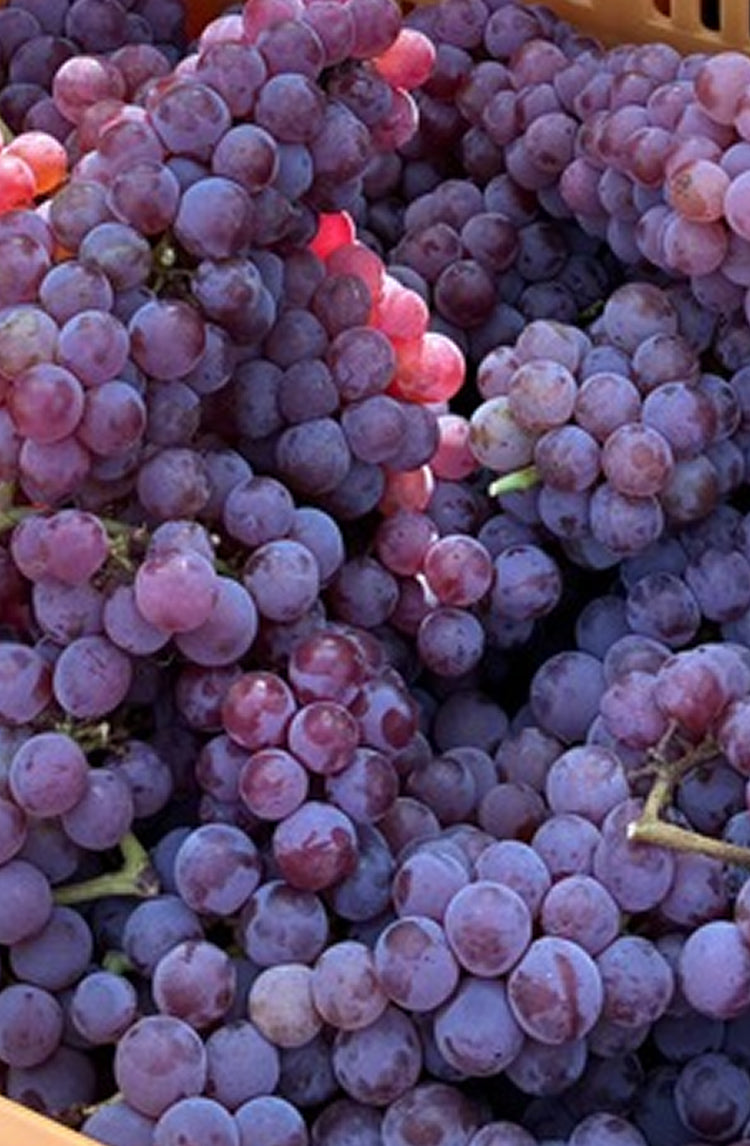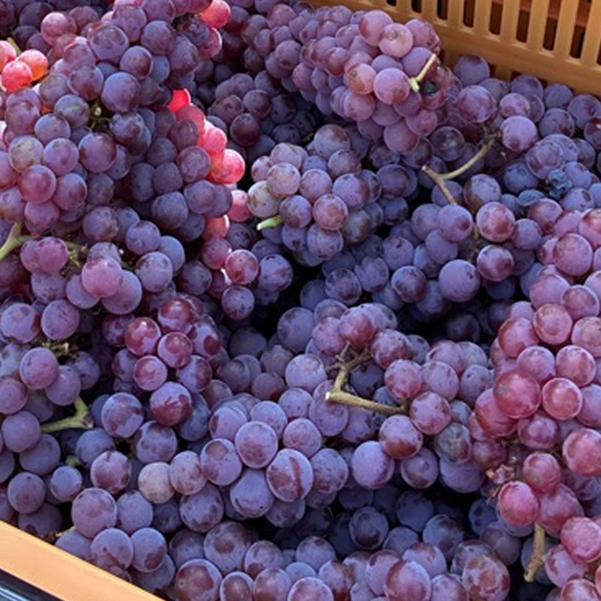 適熟のブドウを少しずつ手収穫し、丁寧に選果。タンクが満たされたところで足踏み破砕します。