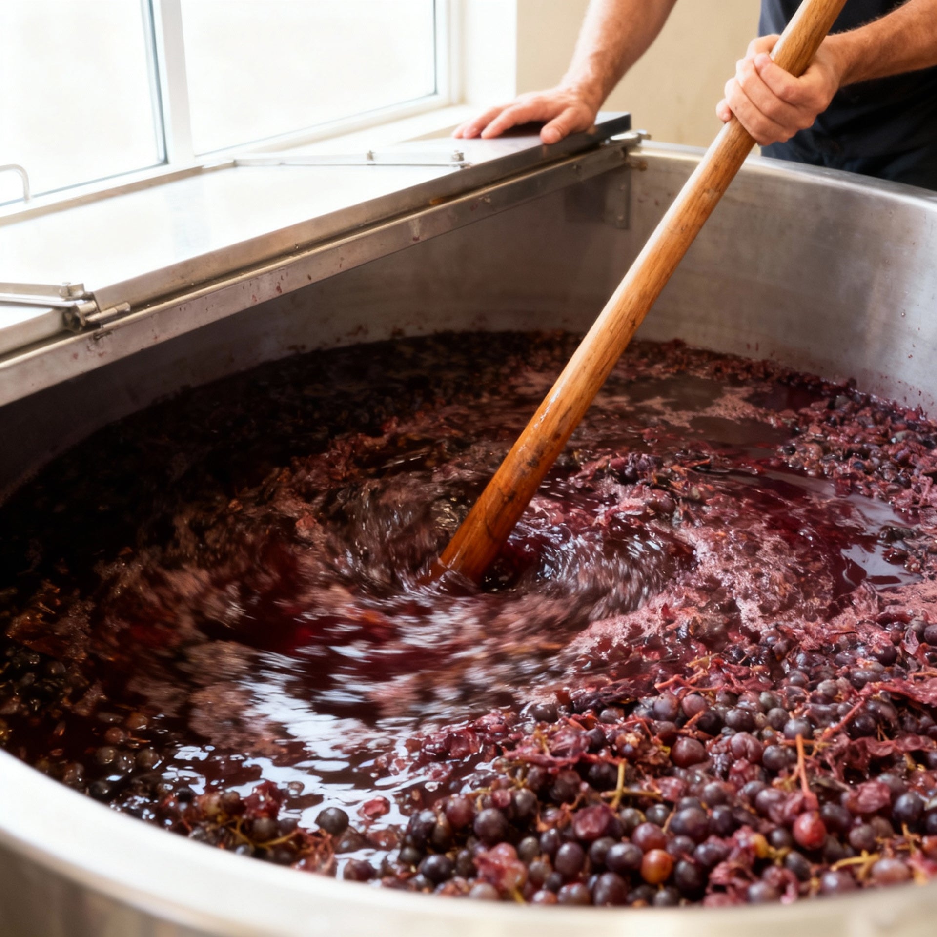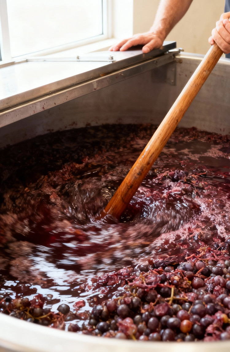 自然発酵を促し、数日後にプレス、発酵終了後に澱引き。