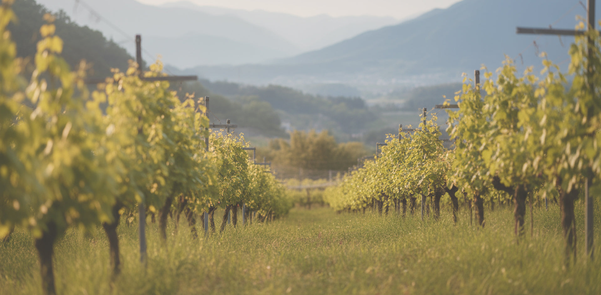 山の斜面による適度な水分ストレス、山あいの昼夜寒暖差がブドウの美味しさにつながります。